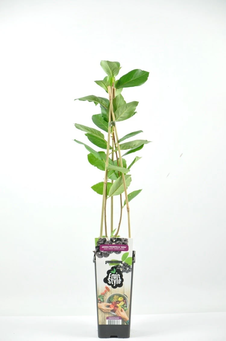 Appelbes (Aronia prunifolia ‘Nero’) staat het liefst op een plek met veel zon of een plek met halfschaduw en heeft een volwassen hoogte tot 300 cm