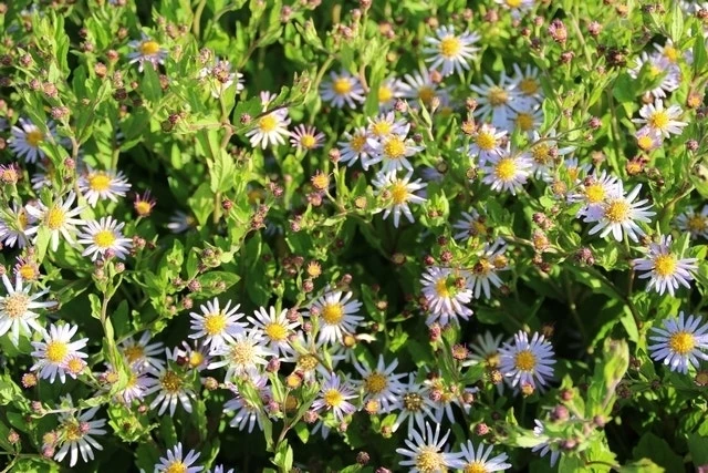 De Aster ageratoides ‘Asran’ (Aster) is zeer geschikt voor ‘de tuin op het zuiden’. Verlangt een zonnige, warme plek op niet te arme grond en buiten de schaduwzone van bomen en heesters. Ze kan gebruikt worden als borderplant, want ze laat zich eenvoudig combineren. Deze plant heeft in de winter bescherming nodig tegen overvloedige regen en sneeuw. In de zomer moet u ervoor waken dat ze niet uitdroogt. Woekert niet of nauwelijks en laat zich goed combineren met andere planten. De bloemkleur is lilablauw en de bloeitijd is van september tot en met oktober. De volwassen hoogte van deze vaste plant is ongeveer 80 cm.