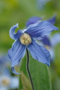 Clematis integrifolia (Bodembedekkende Bosrank) bloeit met hangende blauw tot paarse bloemen in juni-september.