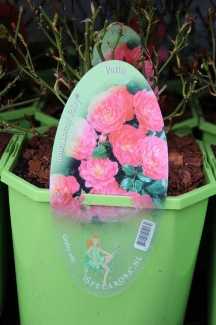 Rosa ‘Lovely Fairy’ is een lage heesterroos of patioroos met kleine hardroze, gevulde bloemen in grote trossen. Uitbundig bloeiend vanaf juni tot in oktober. Hoogte circa 50 cm. Breed en compact uitgroeiend. Zeer gezond. Zonnige standplaats.