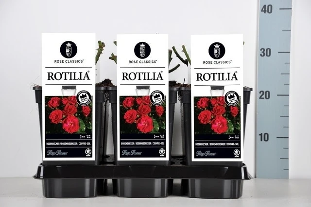 Rosa ‘Rotilia’ (bodembedekkende roos) is een zeer gezonde en rijkbloeiende roos met karmijnrode halfgevulde bloemen van ongeveer 5cm in diameter. Zeer gezond blad. De roos wordt ongeveer 80 cm hoog bij ongeveer 50cm breed en wordt geleverd in een vierkante pot met een inhoud van 3 liter.