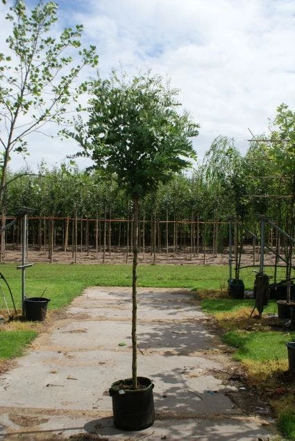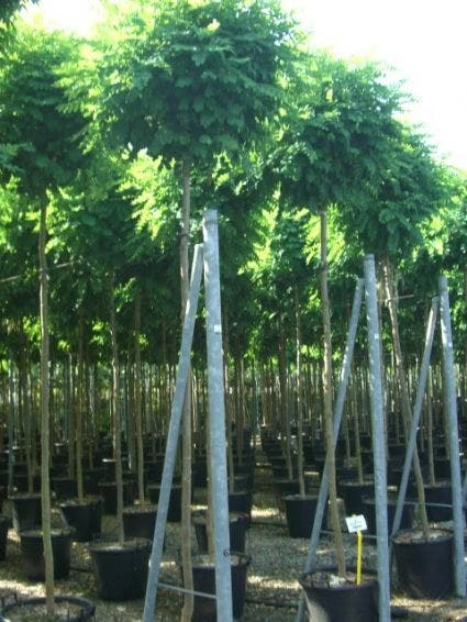 Robinia pseudoacacia ‘Umbraculifera’ (bolacacia) is een bekende en compact groeiende bolboom. Heeft mooi sierlijk geveerd blad. De kroon blijft compact en bolvormig door ieder jaar, na de nachtvorsten, de boom te snoeien (knotten). Loopt laat in het voorjaar uit, maar houdt ook lang het blad vast in het najaar. Bloeit niet bij regelmatige snoei.