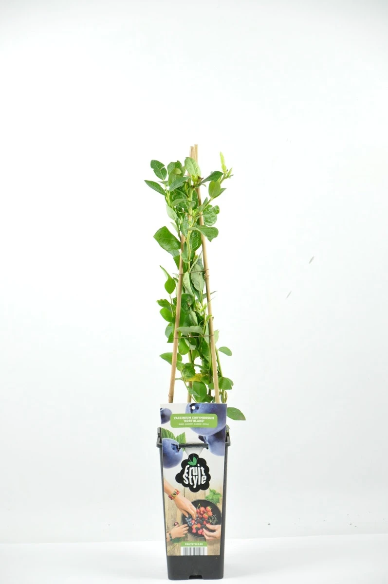 Van de bosbesplant kun je het hele jaar door genieten. Zelfs in het najaar heeft Vaccinium corymbosum ‘Northland’ een mooie herfstverkleuring. Deze Amerikaanse bosbes heeft breed opgaande struiken met dunne takken en klein, frisgroen blad en blijft kleiner dan andere bosbessen . De plant verlangt een humeuze, zure grond en een zonnige standplaats. Hij geeft in de zomer overvloedige blauwe, goed smakende bessen. De vruchten van deze type bosbes zijn wel drie keer zo groot als een normale bosbes en hebben een vroege rijping. De struiken kunnen best een fors formaat aannemen. Deze Vaccinium corymbosum ‘Northland’ is zelf bestuivend, dus ook met één plant krijg je al bessen. Na een aantal jaren zijn er kilo’s bessenproductie. Als de plant als klein struikje in uw tuin wordt gezet, zal de struik het volgende jaar al zijn eerste bessen dragen. Dit wordt gaandeweg meer naarmate de struik groter en ouder wordt. Bloeitijd: April/mei Rijptijd/pluktijd: Vanaf begin juli