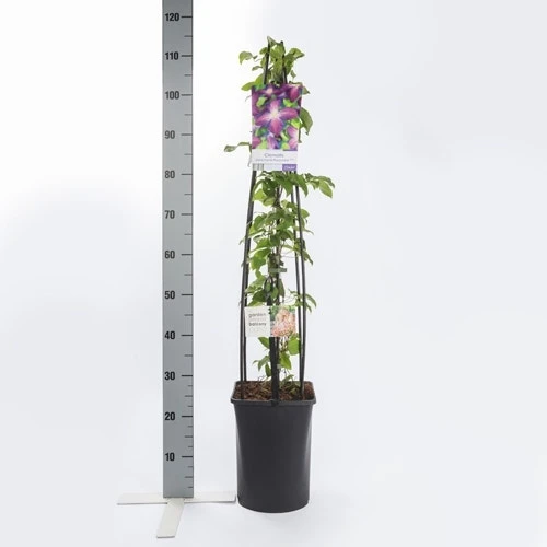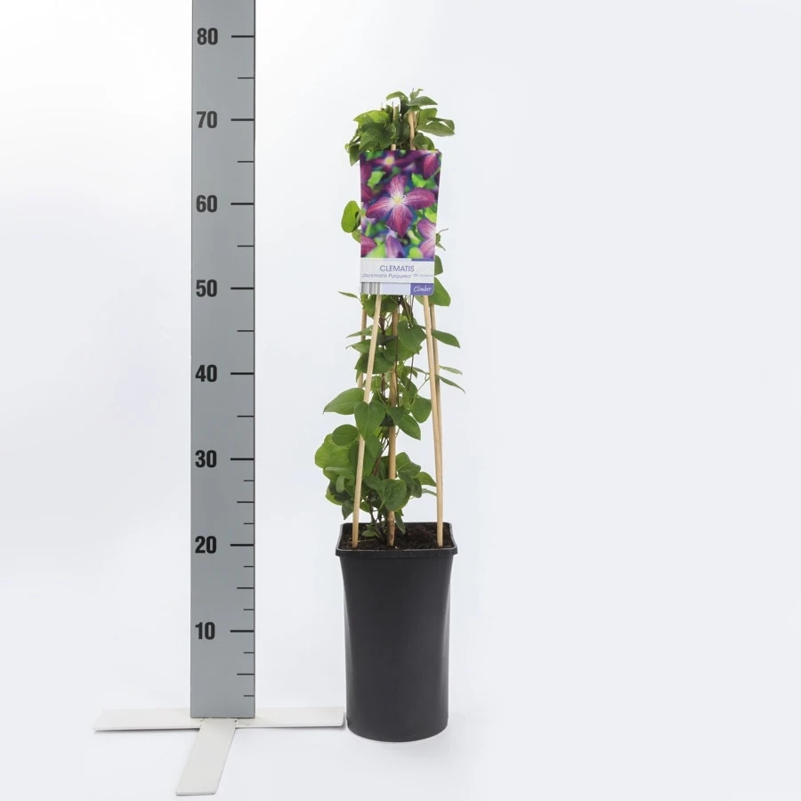 Bosrank (Clematis ‘Jackmanii Purpurea’) bloeit met donker paarse bloemen, en bloeit in juni-augustus. De Clematis ‘Jackmanii Purpurea’ heeft een volwassen hoogte van 3 meter en bereikt deze in ongeveer 3 jaar. De Clematis ‘Jackmanii Purpurea’ is bladverliezend in de winter, en is zeer winterhard, temperaturen tot -28 graden Celsius zijn geen enkel probleem. U snoeit deze Bosrank aan het eind van de winter/begin voorjaar. Als u de Bosrank ‘Jackmanii Purpurea’ wilt gebruiken langs schutting, muur, of gevel, raden wij 3 planten per strekkende meter aan voor een mooi vol resultaat. Bij lagere schuttingen of muren kunt u dit aantal verminderen omdat de Bosrank wel ruimte nodig heeft om te kunnen groeien.