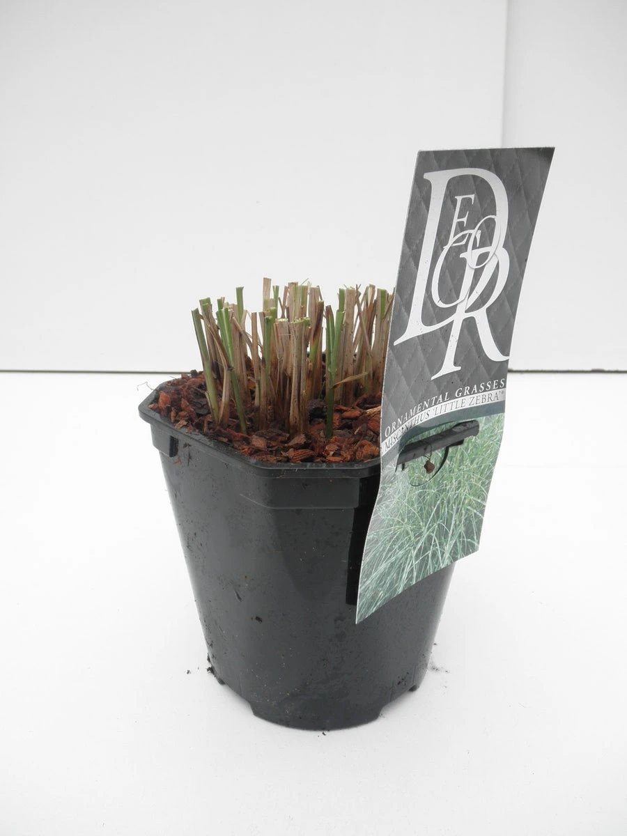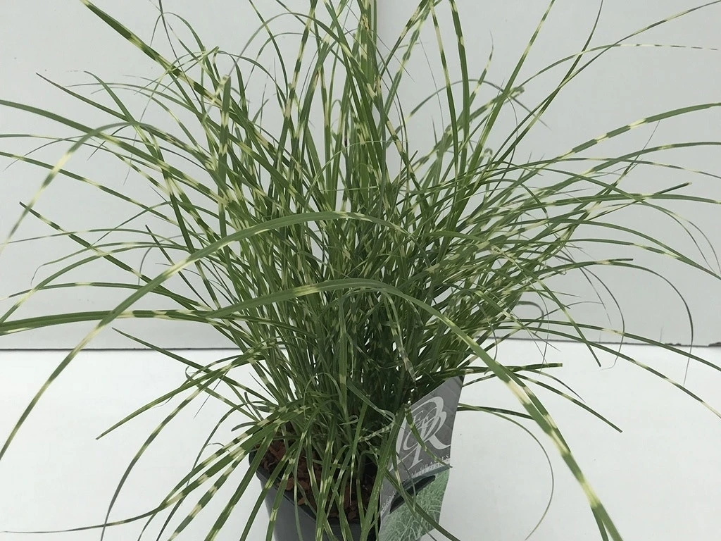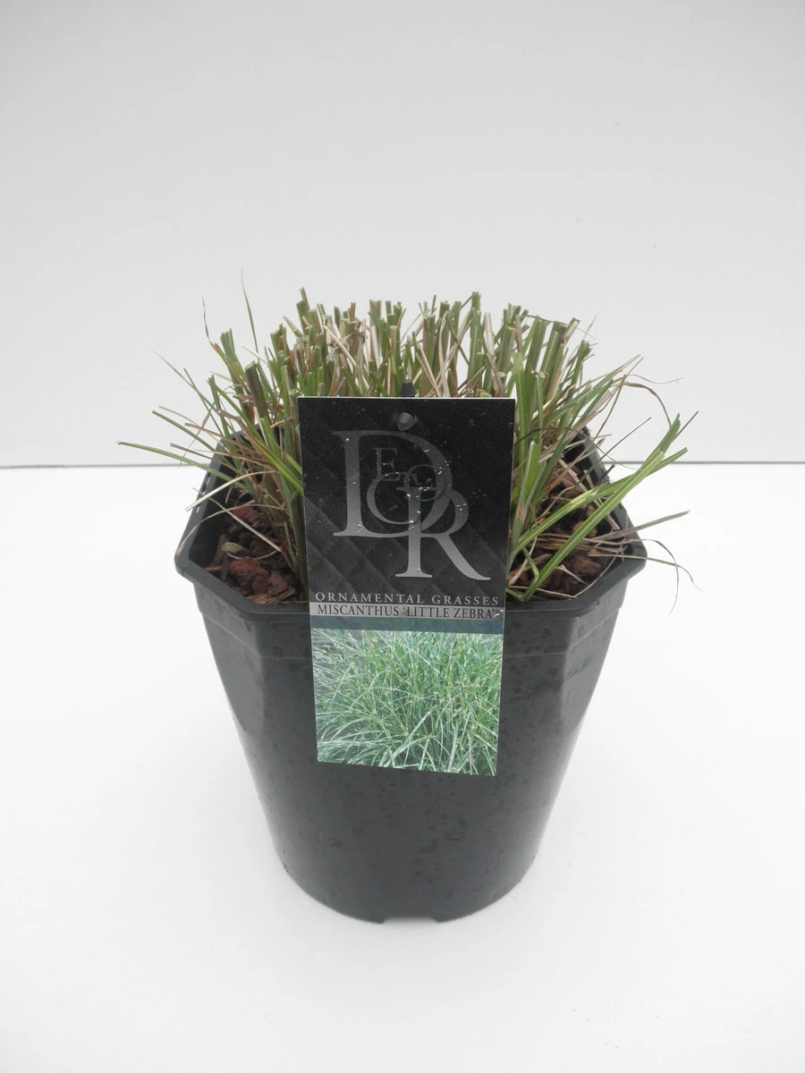 Miscanthus sinensis ‘Litte Zebra’ (Chinees riet / Sierriet) is een kleine opvallende Miscanthus met gele horizontale strepen in het blad. Deze Miscanthus wordt ca. 1 m. hoog. Het is een echte blikvanger. Ook een prima plant voor op het terras en in een pot. Deze Miscanthus wordt ca. 1 m. hoog, waarboven in de herfst de pluimen verschijnen.