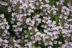 Thymus vulgaris (Echte Tijm) is een aromatisch geurende wintergroene kruidenplant. Compact groeiend. Hoogte tot 30 cm. Blad grijsgroen en sterk geurend. Helderlila bloemen in juni – juli. Zonnige en droge standplaats. Rotstuin of kruidentuin.