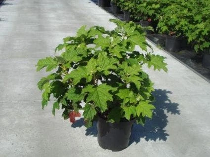 Hydrangea quercifolia ‘Snow Queen’ krijgt een mooie herfstkleur. De zuiverwitte bloemen ontstaan in de zomer al aan de Eikenbladhortensia, in het najaar verkleuren ze over naar iets rozig. De bloemen van deze plant zijn vrij groot. Hydrangea quercifolia ‘Snow Queen’ is een synoniem van Hydrangea quercifolia ‘Flemygea’