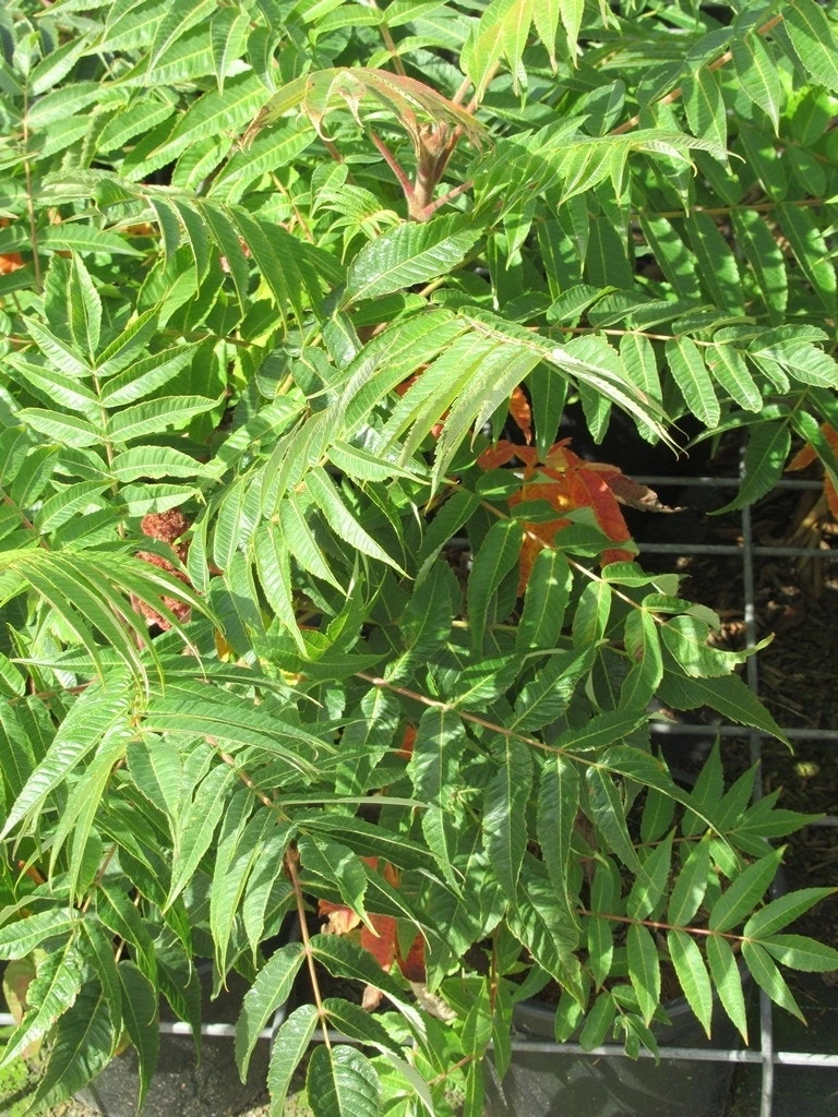 Rhus typhina kan zich vermeerderen door worteluitlopers.