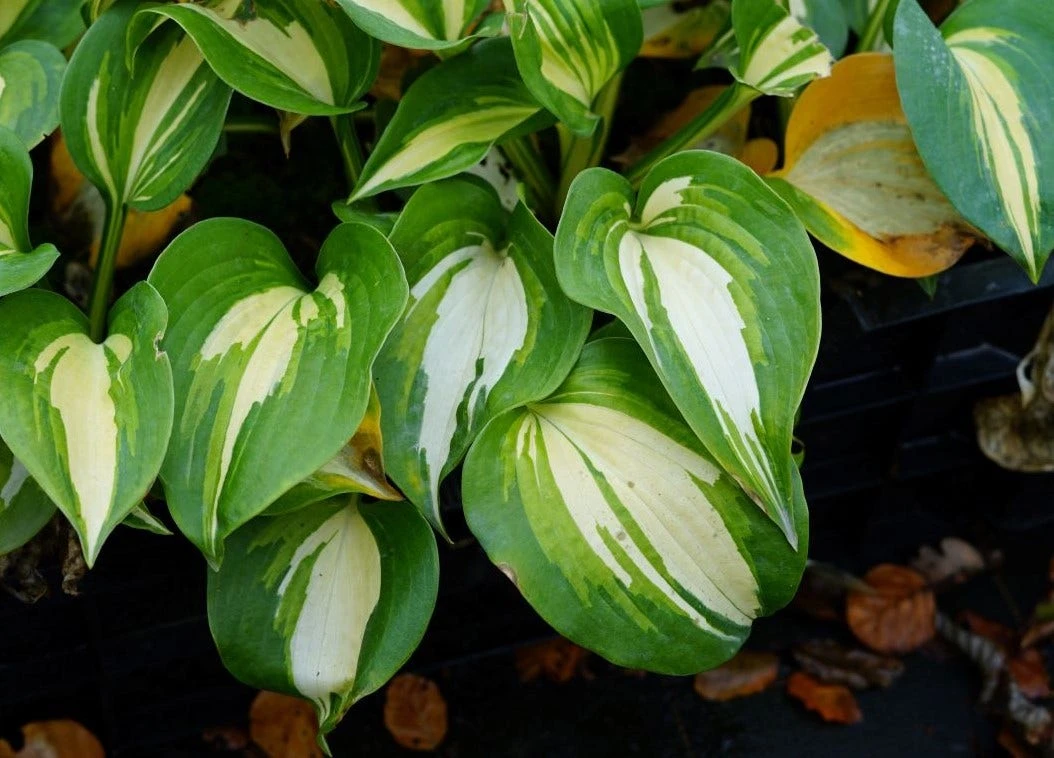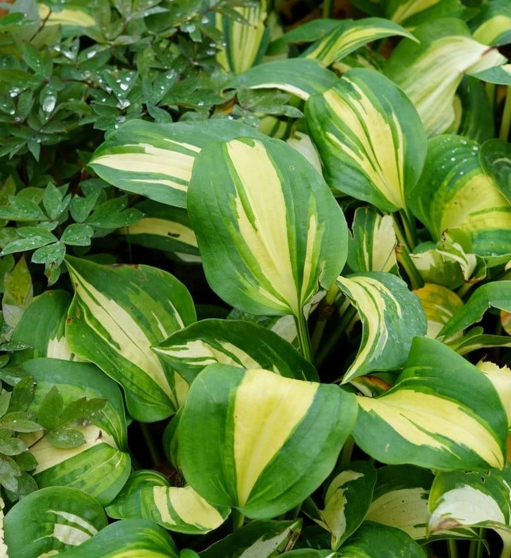 Hosta ‘Great Expectations’ (Funkia / Hartlelie) is een fijne groep planten. Bruikbaar op vele plaatsen in de tuin. Deze bontkleurige Hosta krijgt grote gele bladeren met een onregelmatige rand in de kleur groenblauw.