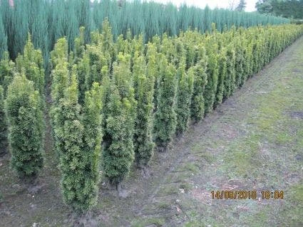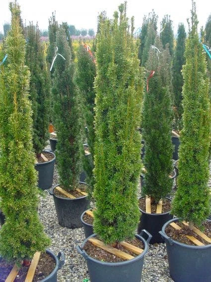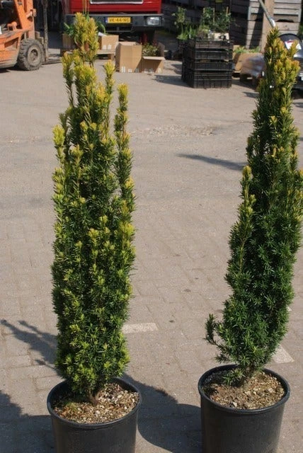 Taxus baccata ‘Fastigiata Aurea’ is een zuilvormige gele taxus leuk voor verticaal accent. De hoogte na 10 jaar is 5 m. De loofkleur is geelgroen. Deze plant is zeer winterhard.