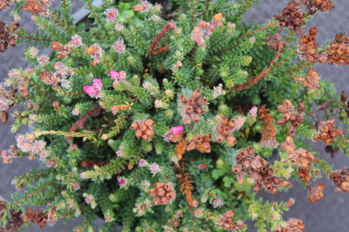 Erica tetralix ‘Con Underwood’ (Gewone dopheide) wordt ook wel belletjesheide genoemd.