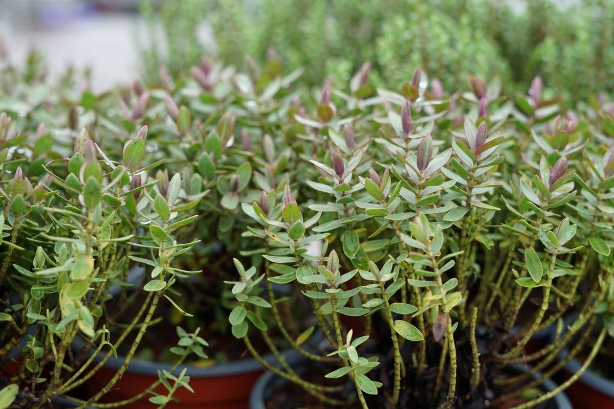 Bij strenge vorst (-10/-15°C) moet de plant beschermd worden. Een leuke struik voor in een rotstuin of bloempot. Hebe albicans ‘Red Edge’ hoeft niet gesnoeid te worden.