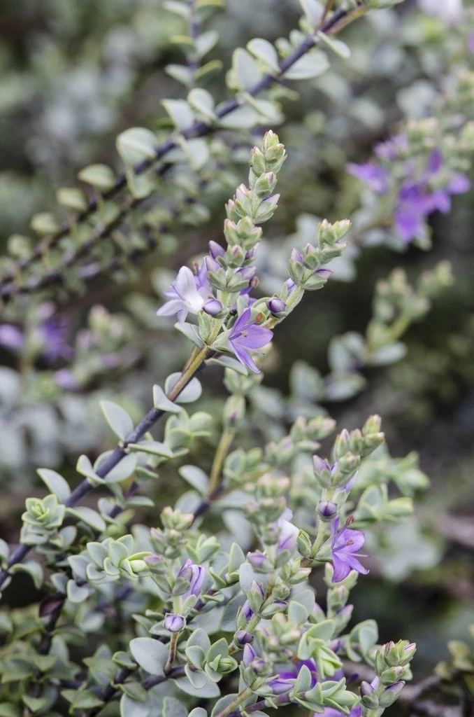Bij strenge vorst (-10/-15°C) moet de plant beschermd worden. Een leuke struik voor in een rotstuin of bloempot.Hebe pimeleoides ‘Quicksilver’ hoeft niet gesnoeid te worden.
