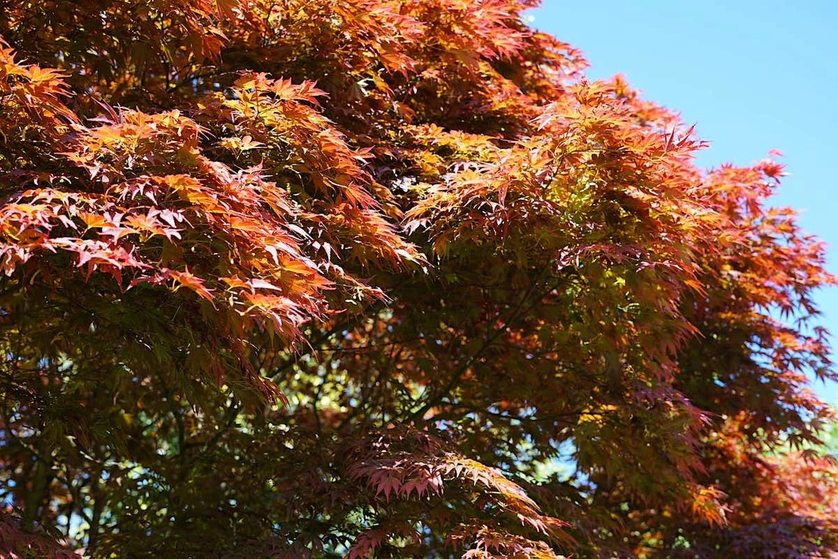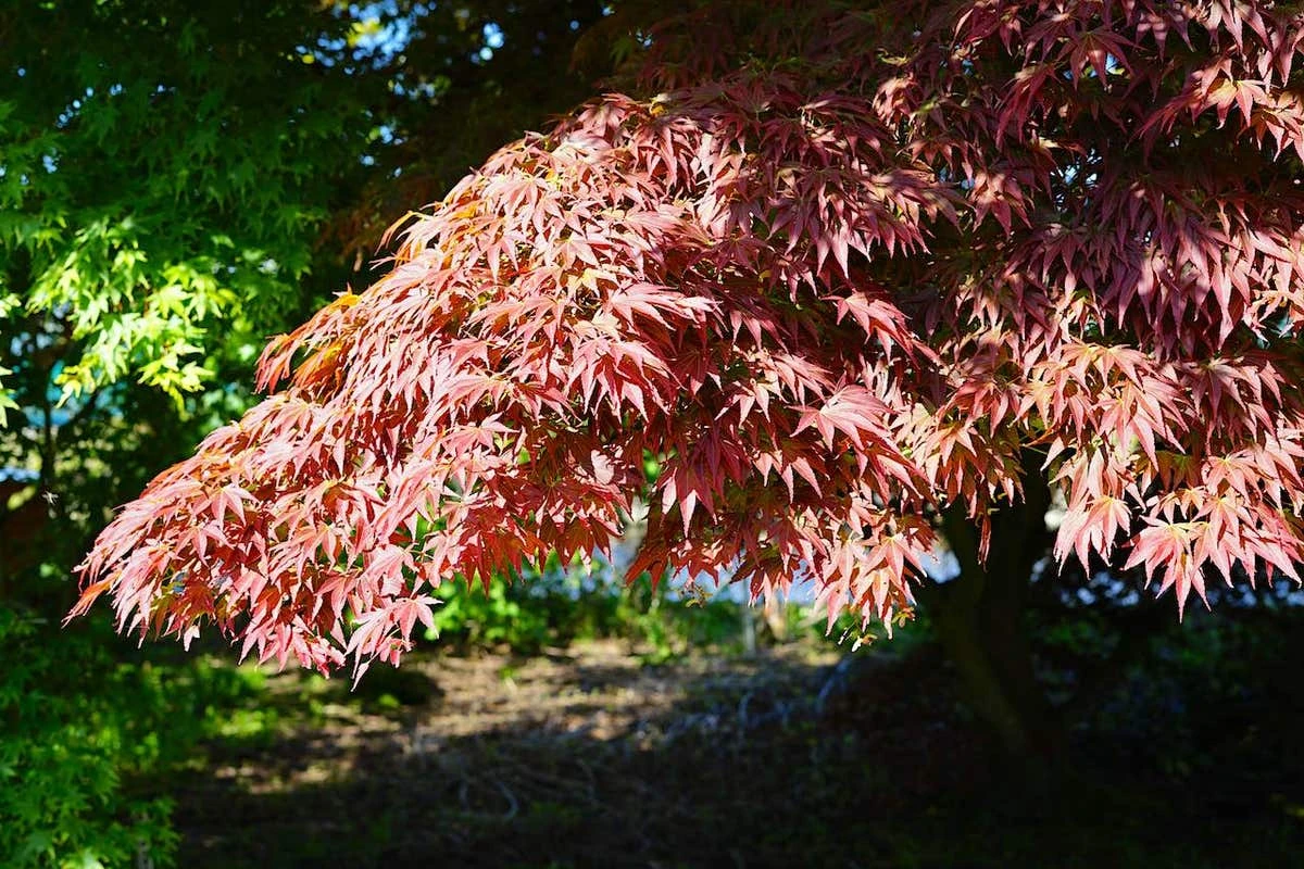 De bladeren zijn purperrood in het najaar verkleurt het diep ingesneden blad naar rood.