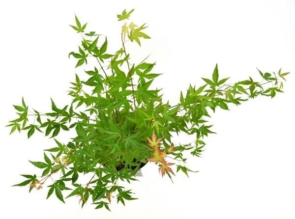 Acer palmatum ‘Wilson’s Pink Dwarf’ loopt in het voorjaar uit met mooie roze bladeren.
