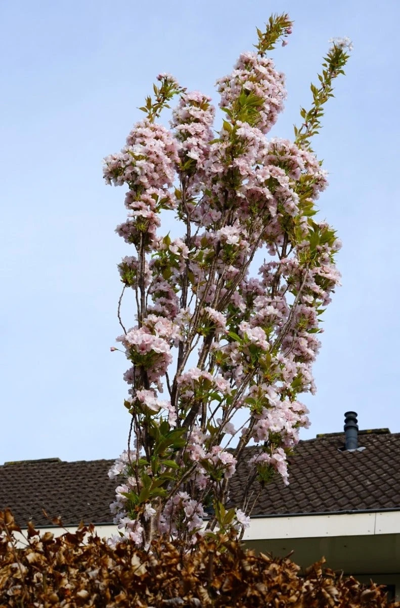 Prunus serrulata ‘Amanogawa’ (Japanse zuilsierkers) is een sierkers met een smal opgaande groeiwijze, ofwel zuilvorm. Prunus Amanogawa bloeit rijk in april-mei met lichtroze bloemen, die in trossen aan de takken hangen. Krijgt in het najaar een mooie herfstkleur. Amanogawa is een mooie bloesem boom, die ook heel geschikt is voor een kleine tuin of border.
