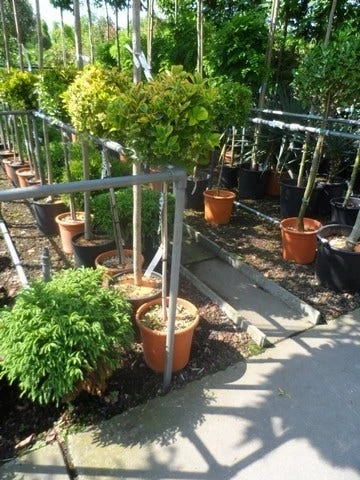 De groenblijvende Kardinaalshoed is gekweekt op stam.