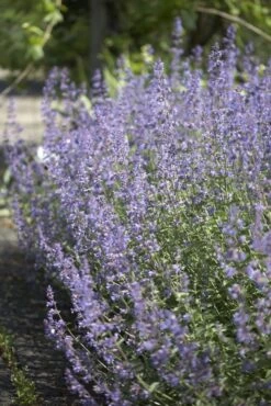 BiologischeNepeta ‘Walker’s Low’ (Kattenkruid) bloeit lang door. Nepeta ‘Walker’s Low’ is ook geschikt voor drogere gronden. Niet veeleisende bossige vaste plant. Loof grijsachtig. Hoogte tot 50 cm. Groeit op vrijwel elke grondsoort, liefst niet te nat. Zon – halfschaduw. Blauwe bloeiwijze vanaf juni. Door te knippen bloeit de plant door tot in september.