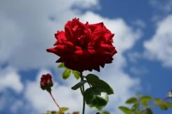 Rosa ‘Velvet star’ bloeit fluweel rood. Een prachtige klimroos met gevulde rode bloemen en een heerlijke geur.