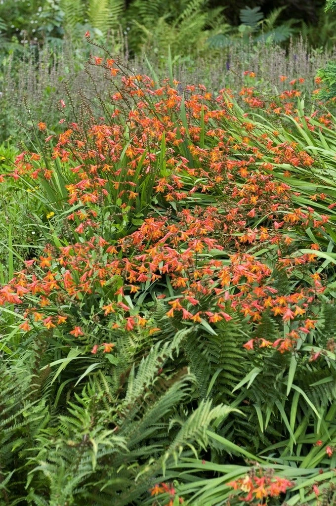 Crocosmia masoniorum (Montbretia) lijkt op een fresia, maar wordt hoger.De Croscosmia masoniorum varieert van 70cm tot 1 m hoog. Crocosmia masoniorum (Montbretia) heeft oranje tot vlammend oranjerode bloemen in augustus en september. Plant nieuwe knollen vanaf eind maart. De meeste soorten zijn vorstvast,maar ook dan is een winterdek nog aan te bevelen.
