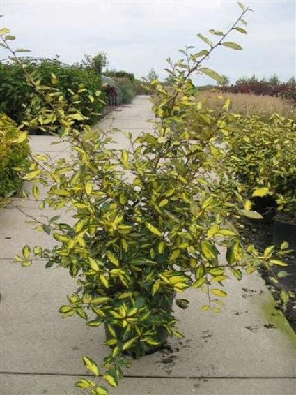 Elaeagnus pungens ‘Maculata’ blijft vrij laag tot 2 meter.
