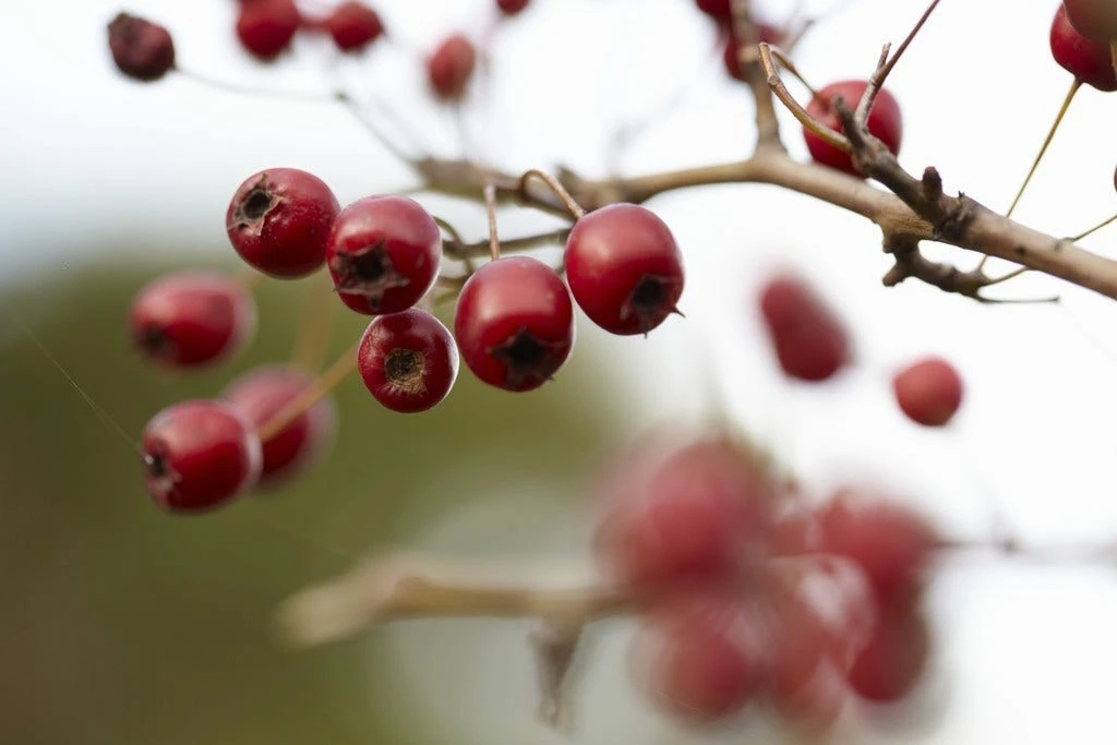 De Meidoorn en Sleedoorn krijgen einde zomer/najaar bessen, de Egelantier krijgt kleine Rozenbottels waar vogels dol op zijn.Â