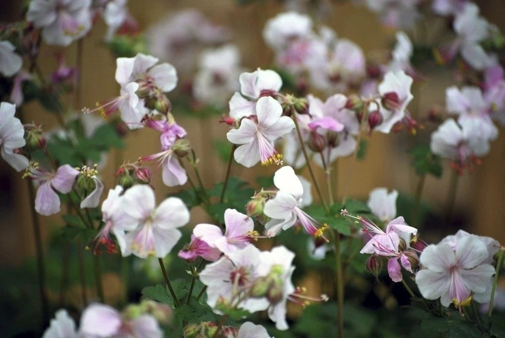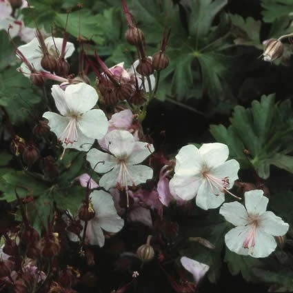 Geranium cantabrigiense ‘Biokovo’ (Ooievaarsbek) is een half wintergroene bodembedekkende plant. Deze Geranium vormt een dicht tapijt. Het liefste een zonnige- halfschaduw standplaats maar niet te droog. Deze Geranium heeft een uitbundige bloeiwijze in mei – juli. Wit met lichtroze. Hoogte 20 cm. In de herfst verkleurt het blad rood.