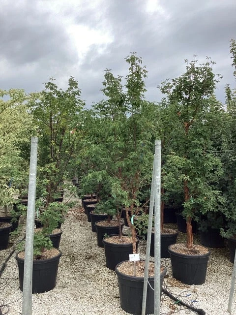 Acer griseum (Papieresdoorn) wordt ook wel dwergesdoorn genoemd. De naam papieresdoorn dankt Acer Griseum aan de afbladerende bast. Acer griseum groeit zeer langzaam uit tot een kleine boom of forse heester. In de hersft krijgt deze Papieresdoorn zeer mooie herfstbladeren die verkleuren van oranje tot rood.. Een weinig voorkomende, zeer mooie esdoorn met een kaneelbruine stam en takken.