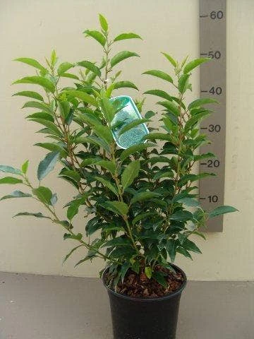 Het blad van Prunus lusitanica ‘Angustifolia’ is smaller en kleiner dan het blad van de soort (Prunus lusitanica).