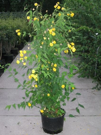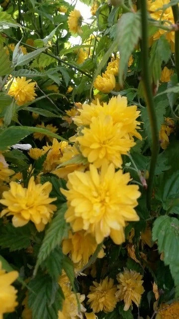 Kerria japonica ‘Pleniflora’ verdraagt ook een standplaats in de lichte schaduw.