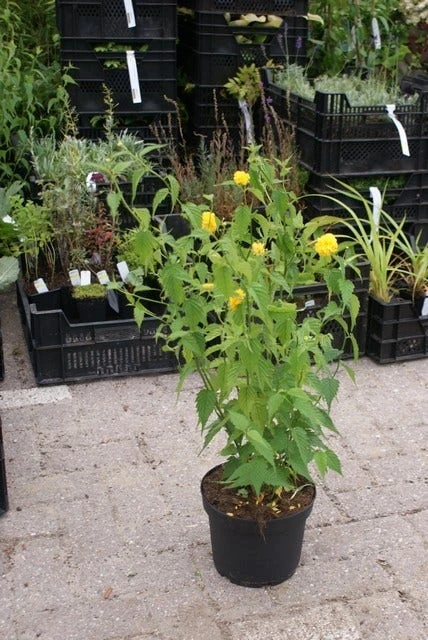 Het is een vroege bloeier (vanaf mei) met vele gele gevulde bloemen.