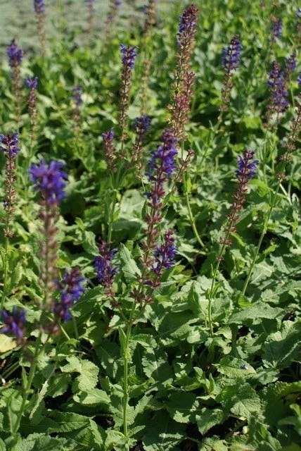 Salvia nemorosa ‘Mainacht’ (Salie) bloeit zeer lang met donkerpaarse bloemen. Salvia nemorosa en cultivars geknipt na de bloei, geeft een tweede bloei. Herkomst: Oost-Europa en West-Azie. Groeivorm: Bossig groeiend. Hoogte: 50-60 cm. Blad: Groen, eirond-lancetvormig. Bloemen: In schijnaren. Groeiplaats: In stevige, goed doorlatende grond. Toepassing: De vroegst bloeiende salie. Als u de oude stengels in de winter aan de plant laat, geeft dit redelijke winterbescherming. U herkent de planten aan de kruidige geur van het loof. Een gezonde groeier die nagenoeg geen problemen kent. Vermeerderen door delen of stekken in de lente.