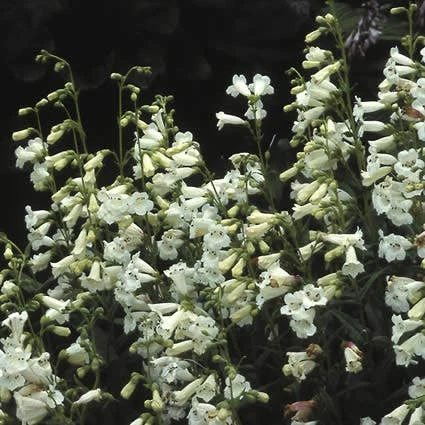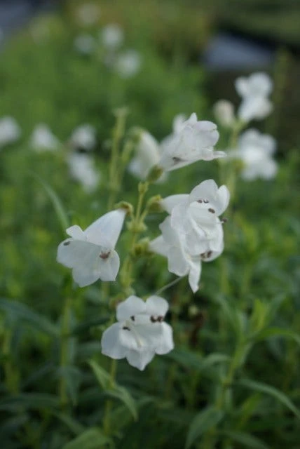 Penstemon ‘White Bedder’ (Schildpadbloem) is een rijkbloeiende planten voor iedere doorlatende tuingrond. Winterbescherming is nodig.