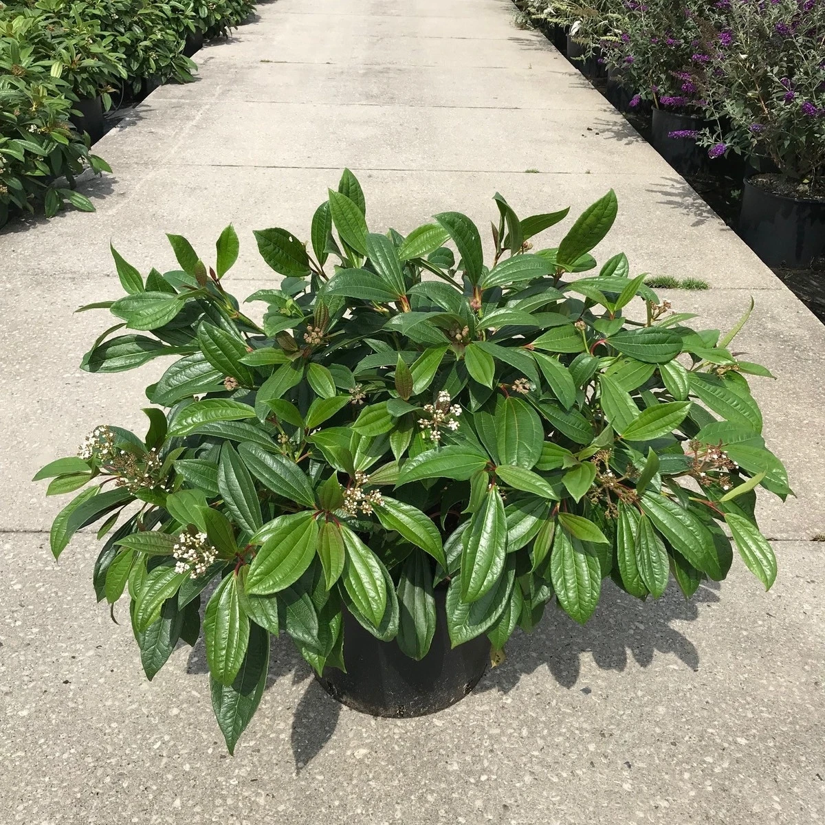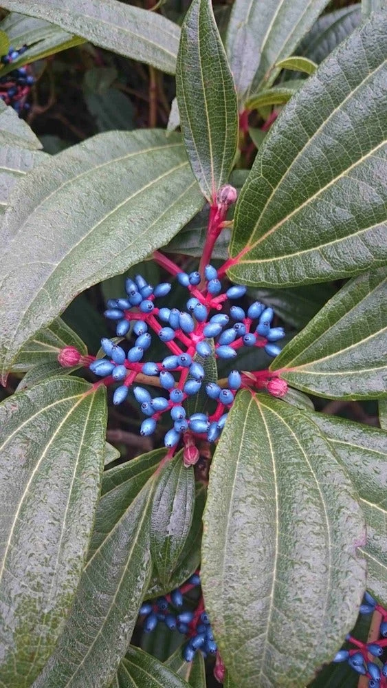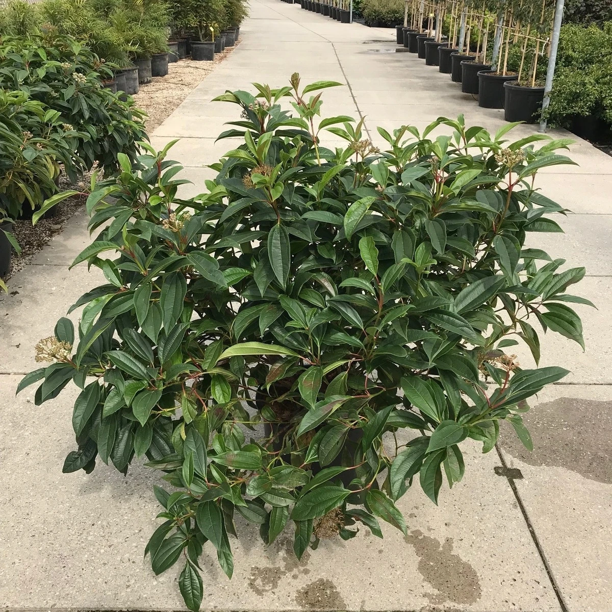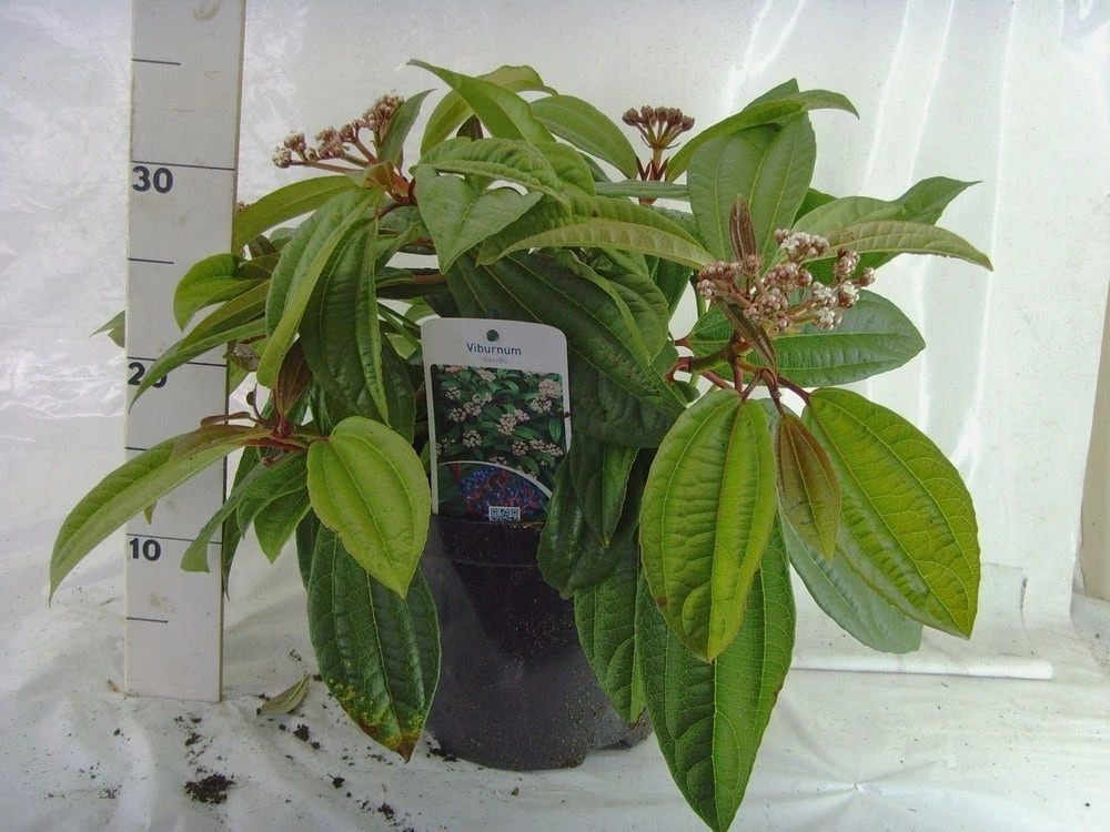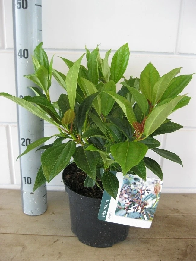 Viburnum davidii is een prachtige lage wintergroene bodembedekker. Als de Viburnum davidii mooi is uitgegroeid krijgt onkruid geen kans meer om zich te ontwikkelen. Het blad is groot en donkergroen van kleur, dit geeft een zeer fraai winterbeeld in de tuin. Deze Sneeuwbal bereikt een hoogte van 50 cm en kan wel een meter breed worden. De aangegeven maten van Viburnum davidii zijn breedtematen! De witte bloemschermen ontstaan in mei tot juni, in het najaar ontstaan er blauwe bessen aan de Viburnum davidii.