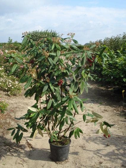 Viburnum rhytidophyllum is geschikt voor grote tuinen, waarin hij een mooi winterbeeld geeft.