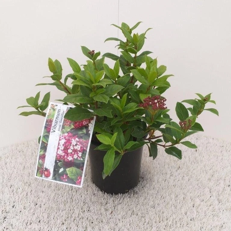 Viburnum tinus ‘Gwenllian’ kent een compacte groeiwijze en een langzame groeisnelheid en blijft lager. Hierdoor is deze kweekvariant uitermate geschikt voor vormsnoei.