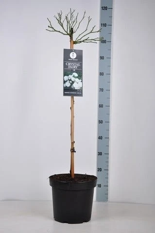Rosa ‘Crystal Fairy’ (stamroos) is sprookjesachtig mooi, deze witte patioroos bloeit met veel volle bloemen. Uitbundig bloeiend vanaf juni tot in oktober. Breed en compact uitgroeiend. Zeer gezond. Zonnige standplaats.