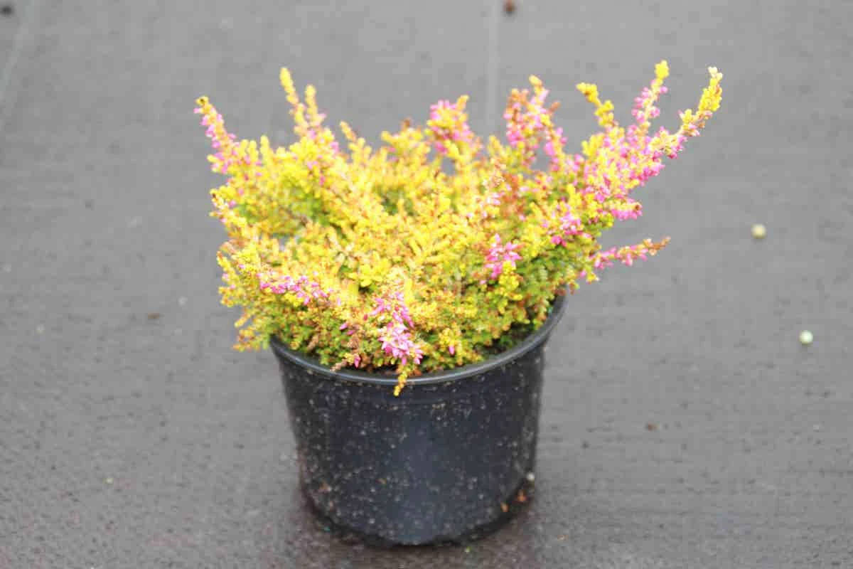 Calluna vulgaris ‘Anne Sofie’ heeft mooi geel loof wat de hele winter door wat kleur geeft.