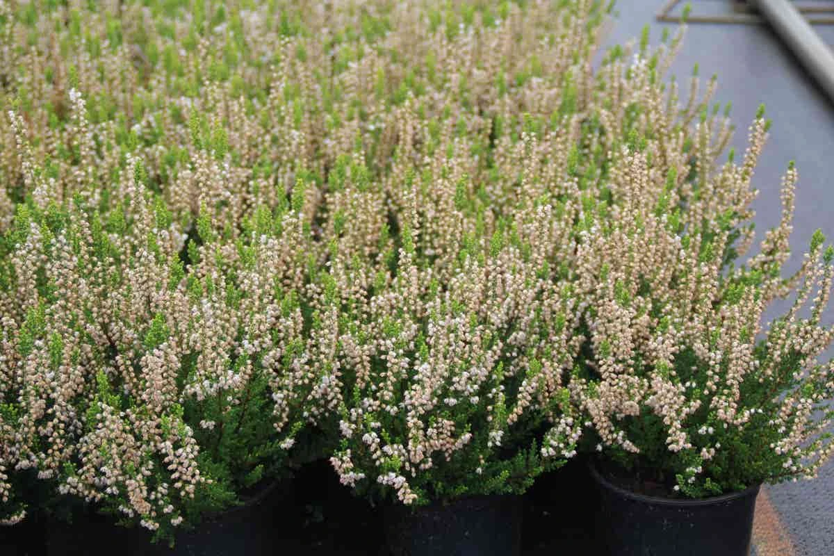 Calluna vulgaris ‘Spring Cream’ is een wit bloeiende heide.