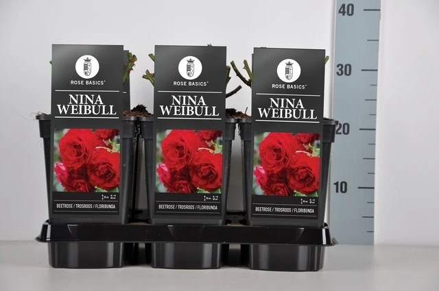 Rosa ‘Nina Weibull’ (trosroos, rood) is een mooie, rijkbloeiende trosroos met dichtgevulde rode bloemen. Rosa ‘Nina Weibull’ (trosroos, rood) wordt ongeveer 50cm hoog en 40cm breed. Rosa ‘Nina Weibull’ (trosroos, rood) heeft zeer gezond blad en bloemen met een diameter van ongeveer 5 cm. Rosa ‘Nina Weibull’ (trosroos, rood) is zeer winterhard en wordt geleverd in een vierkante pot met een inhoud van 3 liter.