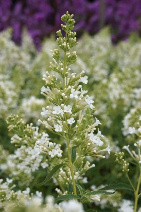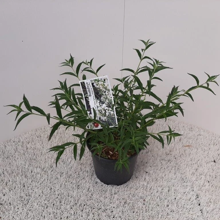 De Buddleja ‘Snow White’ bloeit wit van juli tot september. Het is een compacte groeier en deze vlinderstruik wordt zo’n 65 cm hoog. De plant staat graag in ze zon. Uiteraard trekt ook deze Buddleja veel vlinders aan.
