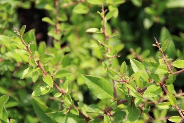 Pyracantha ‘Red Cushion’ is een wintergroene heester met stekels.