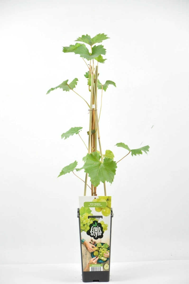 Vitis ‘Bianca’ is een witte druif. Het is een snelle groeier die u goed in bedwng kunt houden door middel van snoeien. Vitis ‘Bianca’ geeft vanaf september eetbare druiven.