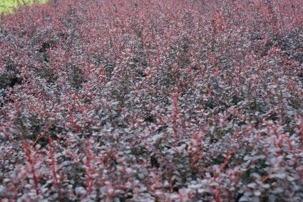 De struik is zeer dicht vertakt met rood blad, in de herfst zijn de bladeren helderrrood.
